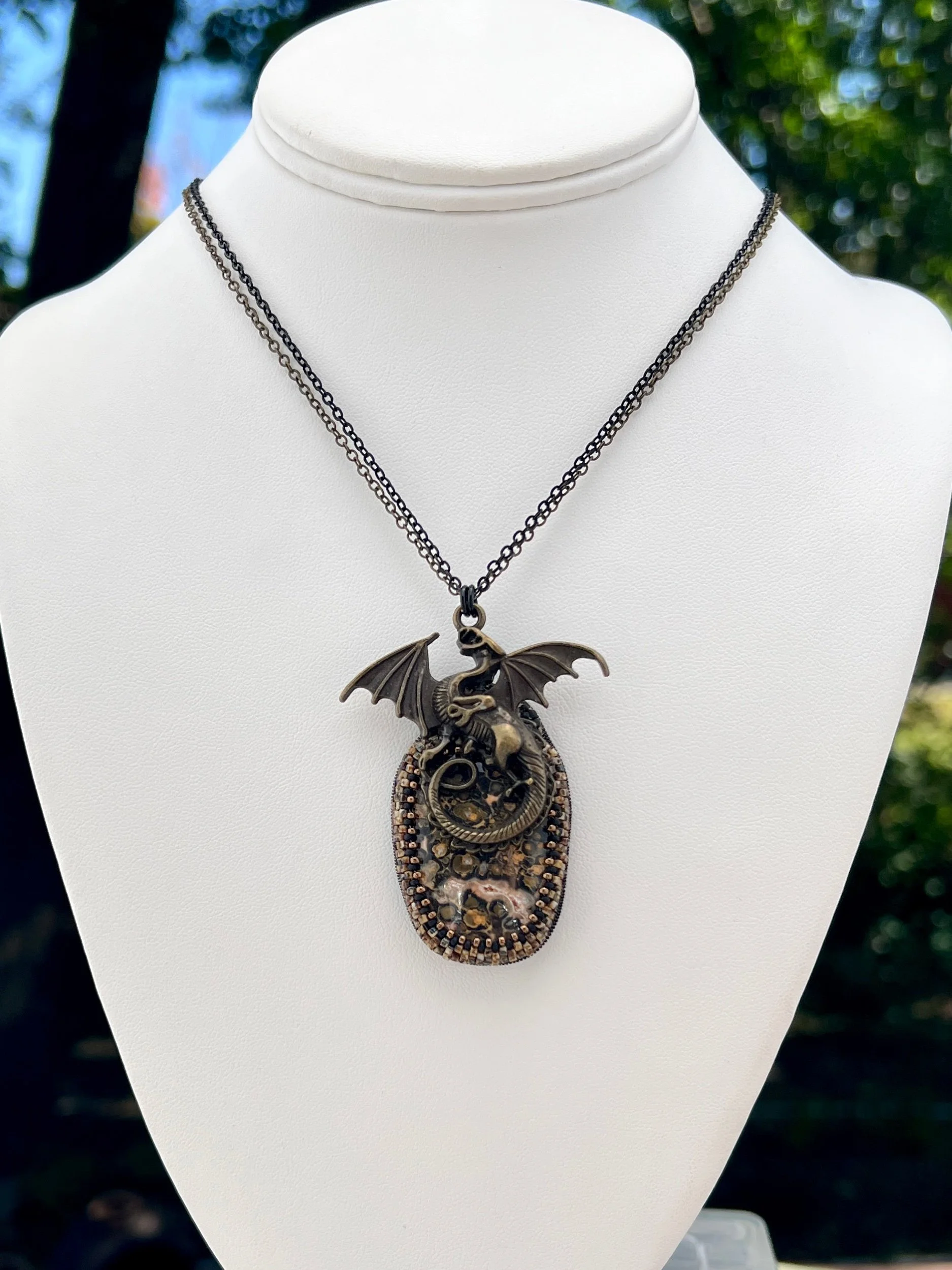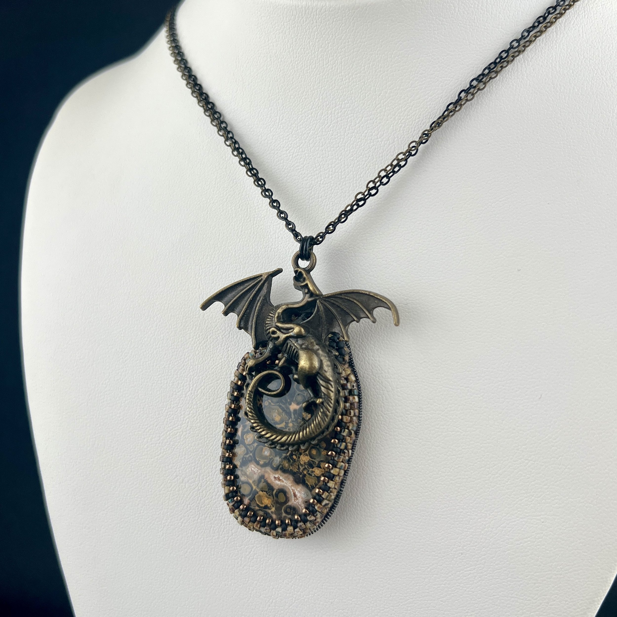 The Statement Collection Leopard Skin Jasper Dragon Pendant Sale Price: $185.00 Original Price: $250.00 Sale Purchase Added! Bumblebee Jasper Pendant/Pin Sale Price: $325.00 Original Price: $450.00 Sale Purchase Added! Black and Purple Flower Pendant Sale Price: $225.00 Original Price: $325.00 Sale Purchase Added! Labradorite with Mint Green Crystal Sale Price: $275.00 Original Price: $365.00 Sale Purchase Added! Shattuckite with Chalcedony and Blue Swarovski Sale Price: $325.00 Original Price: $410.00 Sale Purchase Added! Matte Red Creek Jasper Sale Price: $250.00 Original Price: $325.00 Sale Purchase Added! Volcano Statement Pendant $625.00 Purchase Added! Mookaite Jasper with 14k Gold $590.00 Purchase Added!